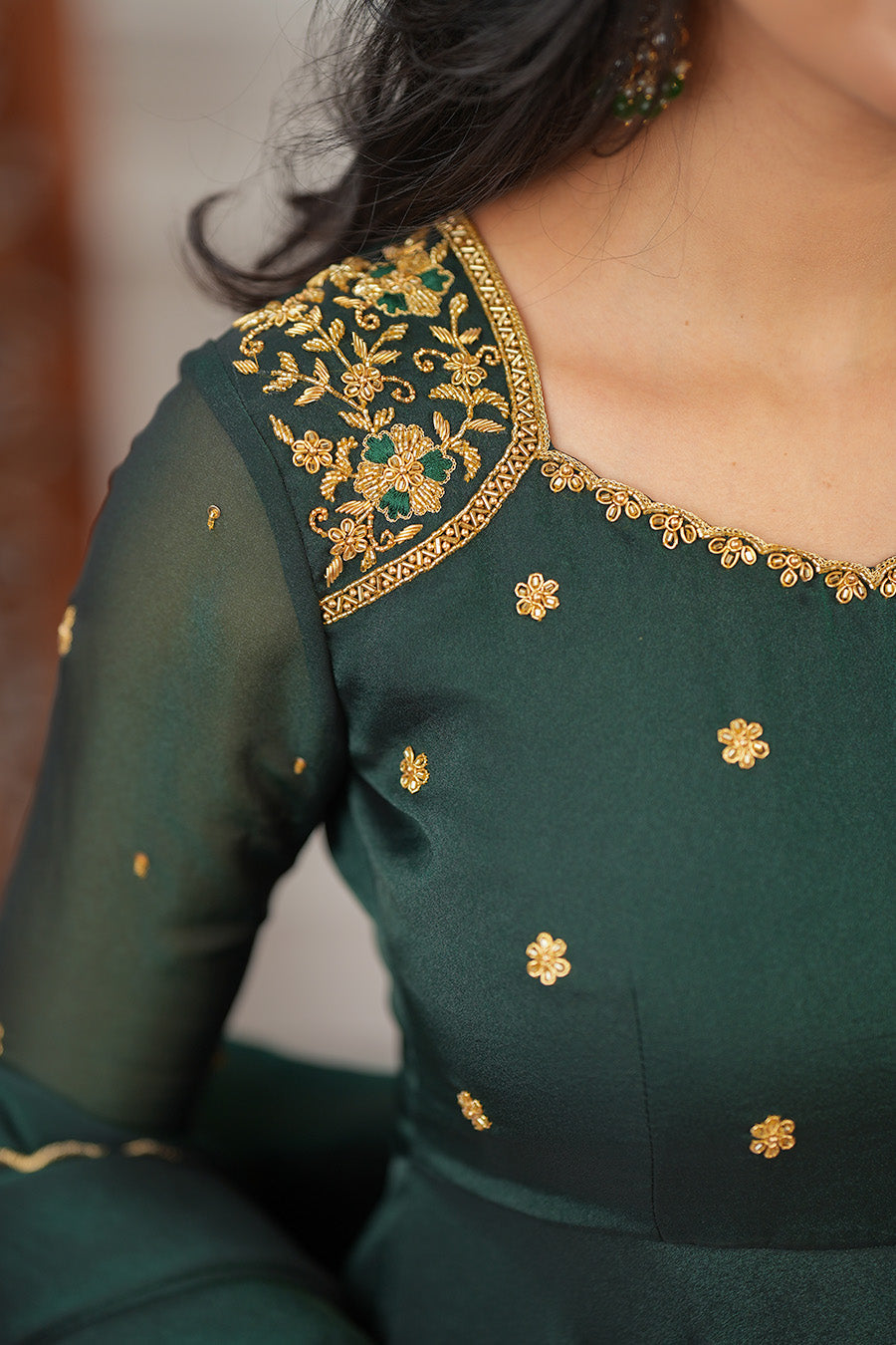 Work: Aari work on neck and sleeves
