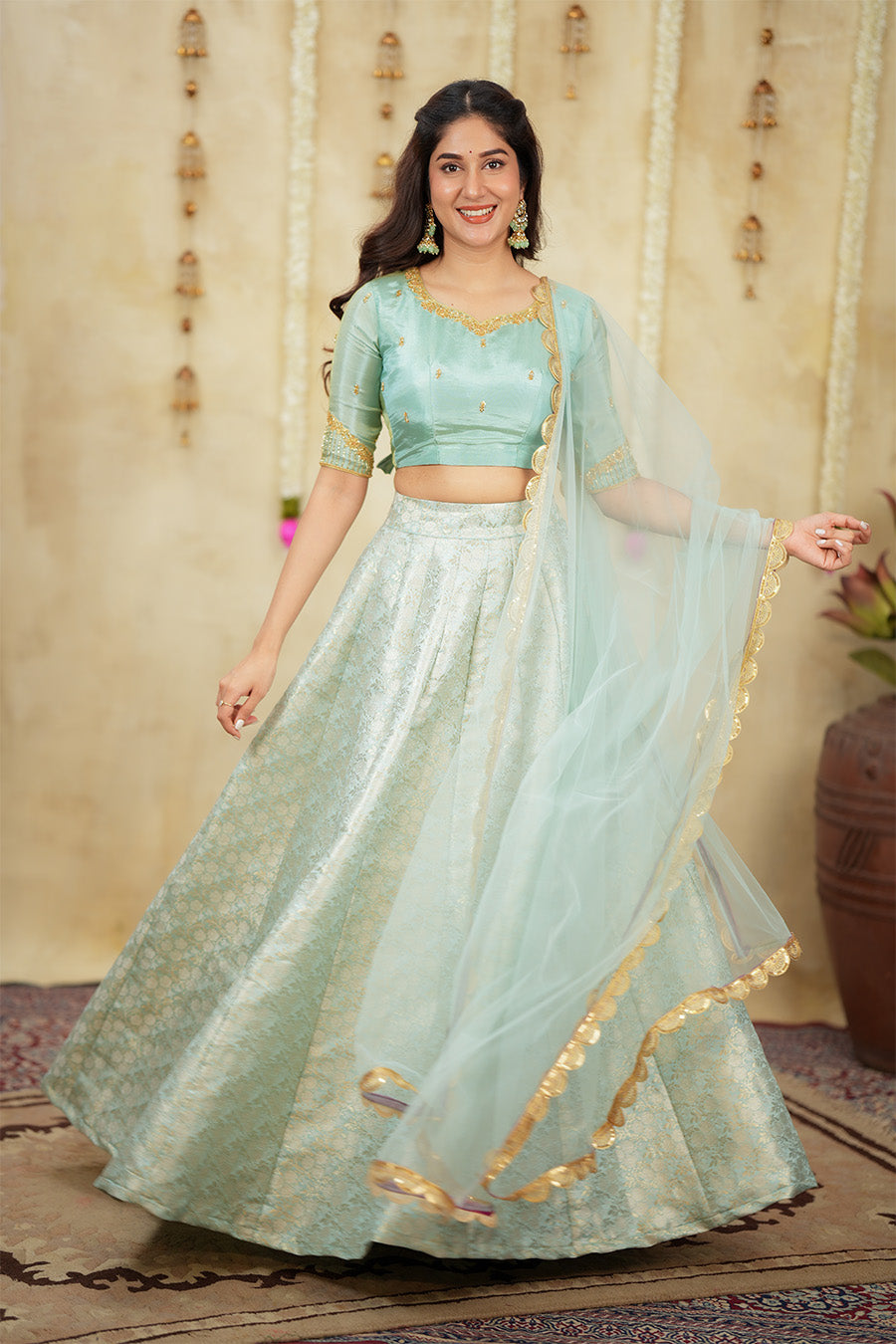 Soft, serene, and refreshingly elegant—the Ishani Collection in mint green is the perfect balance of tradition and contemporary charm. Crafted from premium georgette, this ensemble flows gracefully while delicate yoke detailing and a chic drape add an air of sophistication.