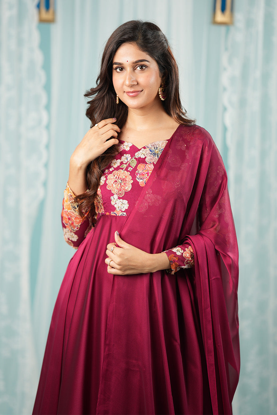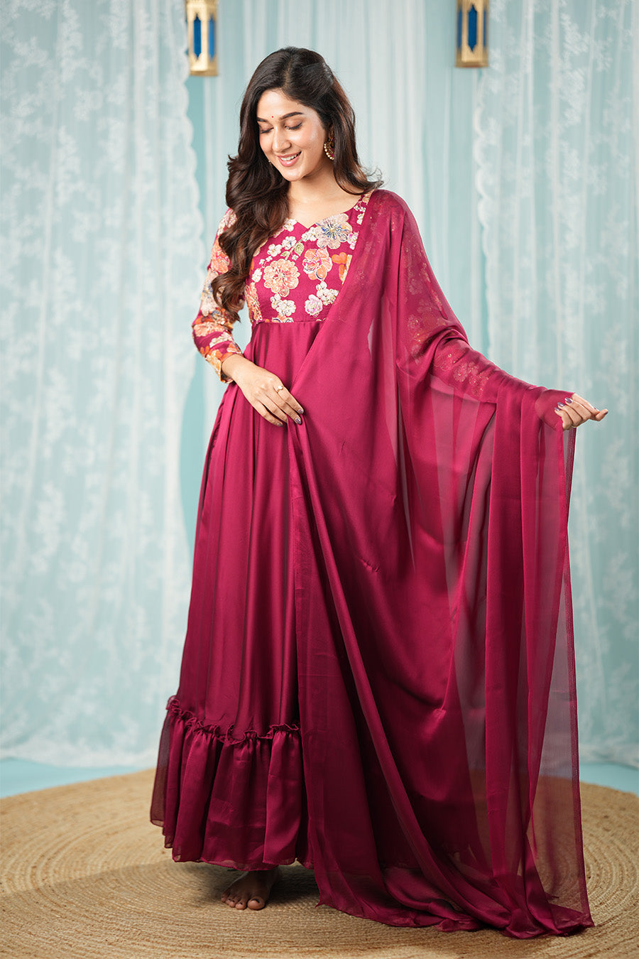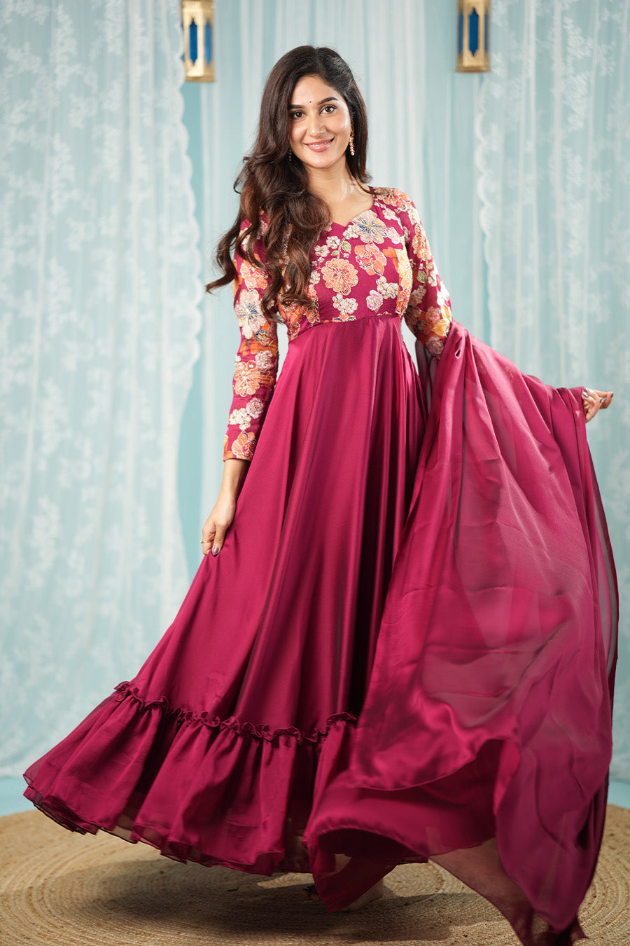 Bold, elegant, and effortlessly chic—the Mia Collection in rich maroon is designed to make every occasion unforgettable. Crafted from luxurious georgette, this ensemble combines timeless sophistication with modern flair, offering a graceful flow and exquisite detailing.