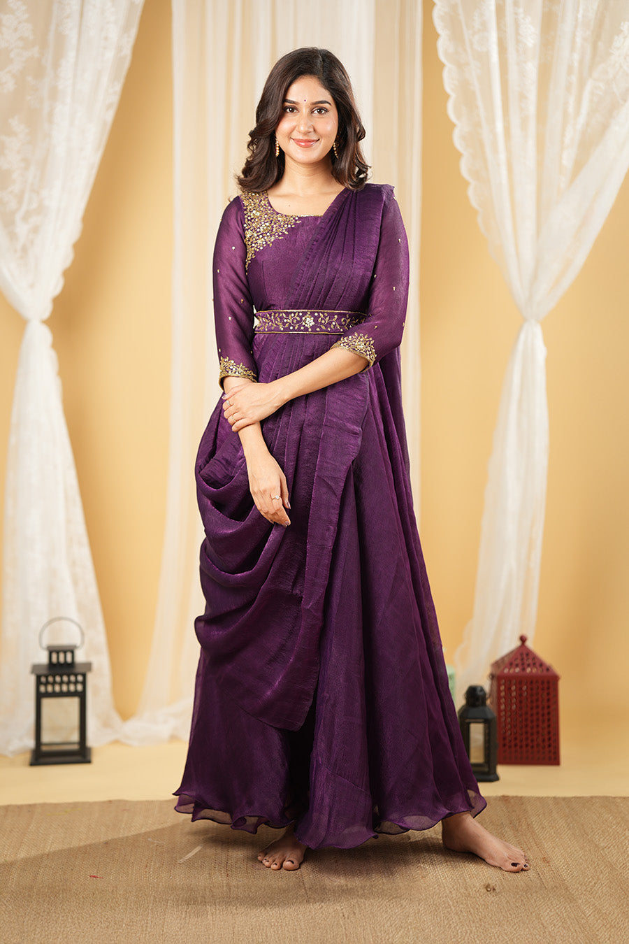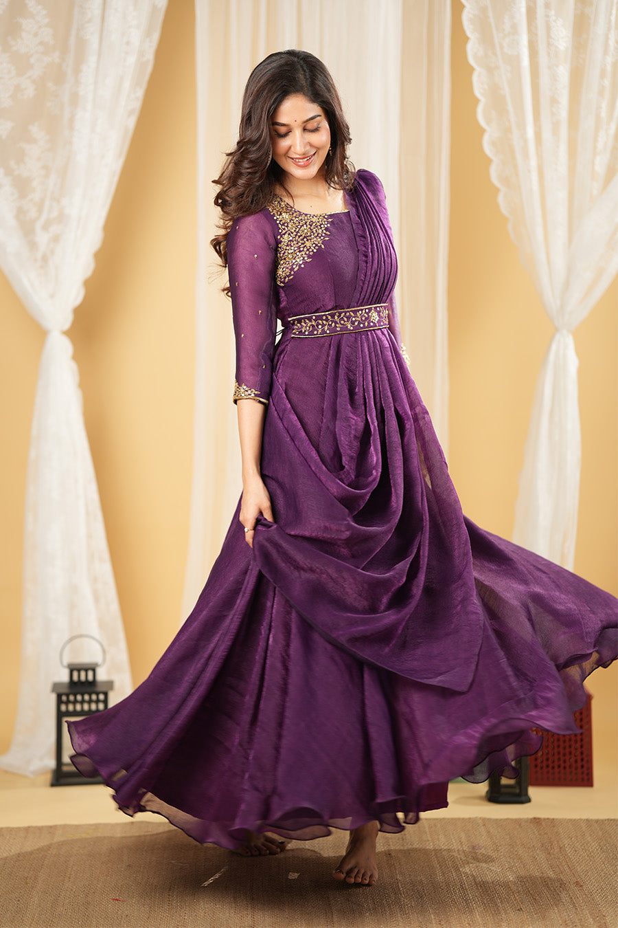 When timeless beauty meets intricate craftsmanship… This drape dress is a perfect blend of sophistication and modern charm. The ethereal yoke and sleeves with stunning heavy intricate work showcase skilled artistry, while the shimmering bottom adds just the right amount of sparkle. ✨✨
