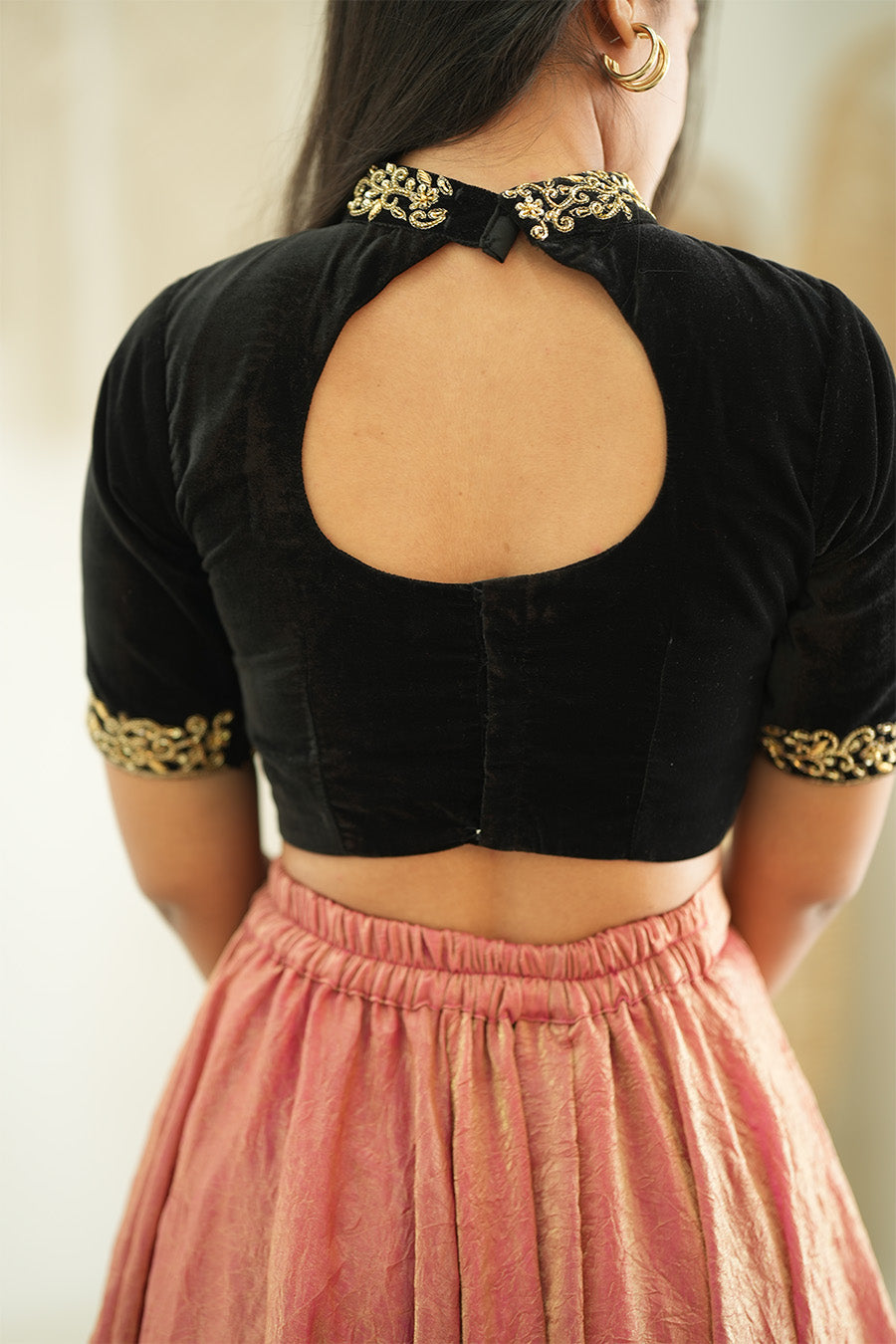 Introducing the epitome of luxury—this velvet crop top and full flare skirt with intricate detailing is perfect for your next grand event. Whether it’s a wedding, reception, or festive occasion, this ensemble promises to make you the center of attention. ✨👗